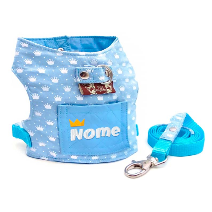 O fechamento no tórax é feito com botão de pressão e fecho de engate com regulagem, proporcionando um ajuste perfeito ao corpo do seu pet. Acompanhando o peitoral, está uma guia feita em nylon resistente com mosquetão reforçado estilo italiano, garantindo segurança e praticidade durante os passeios.