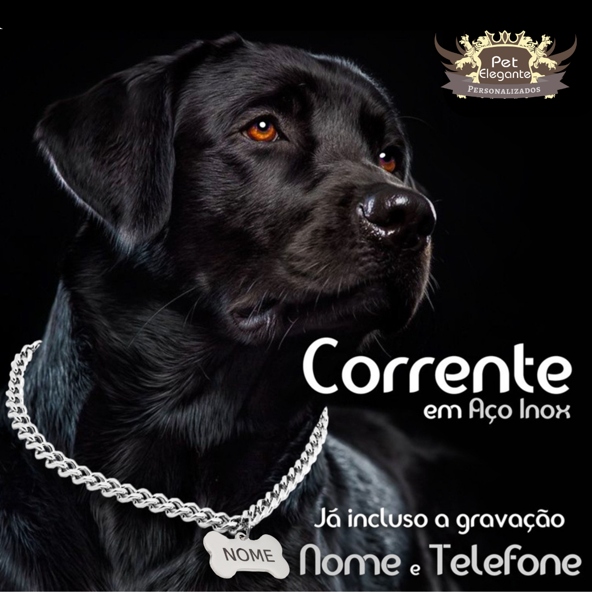 Adicione um toque de elegância ao visual do seu pet com esta bela corrente!