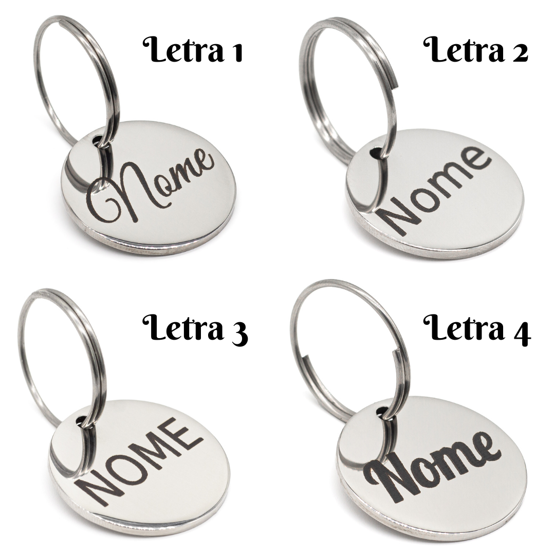 Acompanhada por uma argola de chaveiro, ela pode ser facilmente acoplada a qualquer coleira do seu animal de estimação.